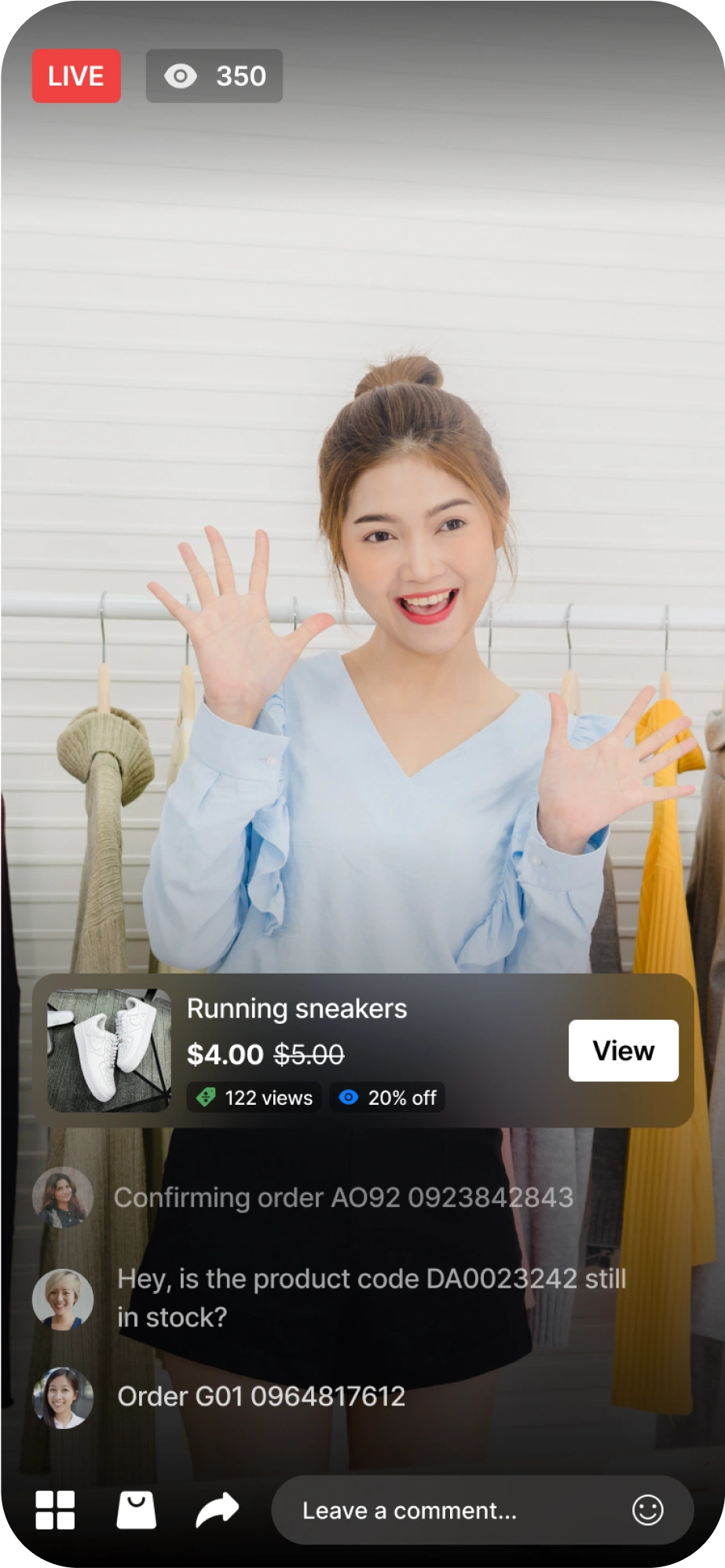 Automatically create orders from comments or allow the shop to pin products directly during the livestream